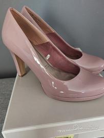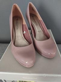 Vendesi come da foto scarpe marca Tamaris color malva misura 39 e tacco altezza 10 cm, lucide in condizioni pari al nuovo
