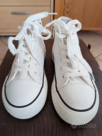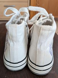 Scarpe tipo All Star in tela bianca, altezza media, marca Fornarina Girl.