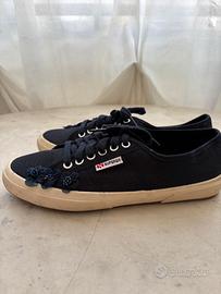 Classiche Scarpe Superga usate solo una volta. Fiorellini applicati personalmente. (Se si tolgono possono essere anche unisex)