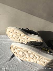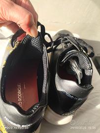 Scarpe in vera pelle, Alviero Rodriguez,n.40 nere nel lati interni e con un disegno simile a Versace sui lati esterni. Sono veramente di qualità ed in perfette condizioni, il modello di tendenza ricorda le Mac Queen .