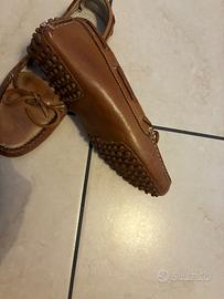 Mocassini “da barca” in vera pelle, colore cuoio da donna. Usate una volta solamente.
