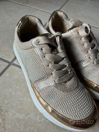 Come nuove. N. 36. In pelle. Scarpe con lacci colore beige, bianco e dorate. Spedizione in giornata