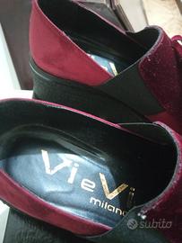 scarpe donna bordeaux 38 quasi nuove con zeppa alta nera e elastico laterale nero di Vi e Vi