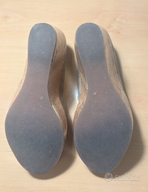 Vendo splendide décolleté con zeppa alta effetto sughero, perfette per slanciare la figura senza rinunciare alla comodità. ✔ Taglia: 37 ✔ Colore: beige/tortora ✔ Tomaia effetto camoscio ✔ Zeppa in sughero naturale ✔ Punta open toe ✔ Plateau anteriore per maggiore comfort Ideali per cerimonie, eventi, ufficio o per un look estivo elegante ma pratico. Stanno benissimo con abiti, pantaloni palazzo o jeans. Disponibile per consegna a mano oppure spedizione a carico dell’acquirente.