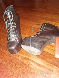 Jeffrey Campbell Lita sono il modello più celebre e conosciuto in tutto il mondo! Tacco largo in legno, pelle nera e stringhe, e la ormai famosa silhouette delle Jeffrey