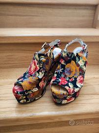Scarpe / sandali con zeppa indossati poche volte. Condizioni ottime come mostrato in foto. Fibbie lucide senza graffi. Rivestimento in velluto senza segni di usura.