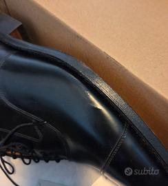------- Come mostrato in una delle foto, una delle scarpe presenta un piccolo graffio/difetto sul lato esterno, vicino alla suola. È un difetto estetico minore che non compromette in alcun modo l'integrità o la portabilità della scarpa.