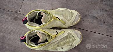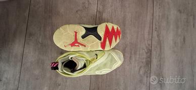 Vendo scarpe Jordan, gialle fluo con zip sui lacci, una retina rende meno sporcabile la parte davanti. Il Prezzo è POCO trattabile.