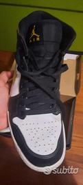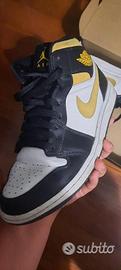 Vendo scarpe Jordan 1mid gialle nere e con tratti bianchi ,usate ma in buone condizioni. Scatola originale. Numero eur 42.5