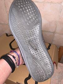 La scarpa è stata usata pochissimo. Com'è possibile vedere dalle foto non presentano difetti o segni di usura. La suola infatti è poco sporca. Presentano solo (sempre come da foto) sulla gomma bianca laterale qualche macchia le quali ho provato a pulire ma purtroppo sulla gomma risulta un po' difficile.