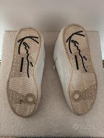 Scarpe Karl Kani in buone condizioni. Non presentano strappi o segni di deperimento particolari perchè sono state indossate due volte. Tuttavia sono un poco ingiallite in alcuni punti e hanno dei segni sui lati delle suole.