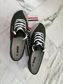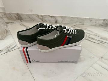 Vendo splendide scarpe Kawasaki N.45 color verde con bande laterali rosse e blu.. struttura in tela, suola in gomma.