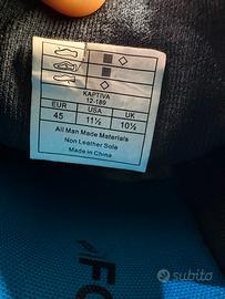 Trail running, taglia 45 (vestono un numero in più, io solitamente porto 44) , sono in stato piu che buono, normale usura da utilizzo (ci ho fatto circa 50km), vedi foto.