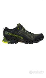 Eccellenti scarpe da escursione in montagna, le scarpe La Sportiva Spire GORE-TEX sono la nuova generazione per il fast hiking. Combinano la tecnologia derivata dal Mountain Running: per ottenere un prodotto versatile, impermeabile e molto traspirante grazie alla nuova tecnologia GORE-TEX Surround. Hanno la struttura esterna Nano-Cells 2.0, cellule molto traspiranti che lavorano in sinergia con la membrana GORE-TEX per maggiore traspirabilità senza precedenti. Inoltre, sono dotate dello Stability Control System (SBT): sistema stabilizzante anti torsione che include i fori di ventilazione della tecnologia di Gore. La suola Vibram XC Trek offre una buona tenuta su tutti i terreni.