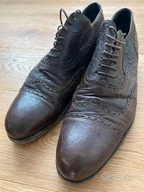 Vendo scarte originali Silvano Sassetti con laccio. Pelle marrone lavorata, suola cuoio. Tg 8 1/2