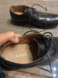 Scarpe “Lalikaer” da uomo in pelle nera, n.43 con suola antiscivolo. Calzate una sola volta, ma grandi per me