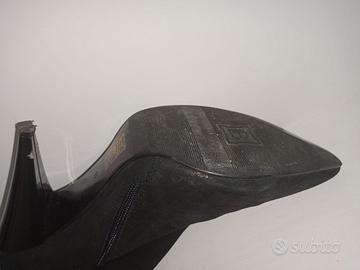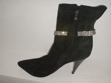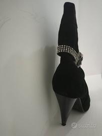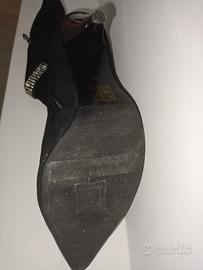vendo stivaletto nero elegante per inutilizzo. tacco leggermente usurato, suola integra, si è tolto qualche strass e un po' di pelle dietro la targhetta LB