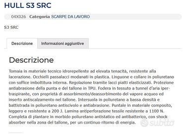 Scarpe lavoro antinfortunistiche SAFE HULL S3 SRC numero 42 Nuove