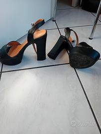 scarpe aperte, tacco 12 cm, nere, con cinturino