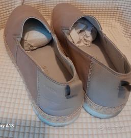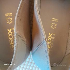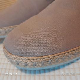 Scarpe estive Geox misura 44, beige , in tela e pelle sul tallone. Hanno tra la soletta interna e la suola traspirante Geox uno strato in corda.