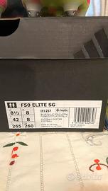 f50 elite sg, complete di dust bag, tacchetti di ricambio, 2 solette, chiave per tacchetti.