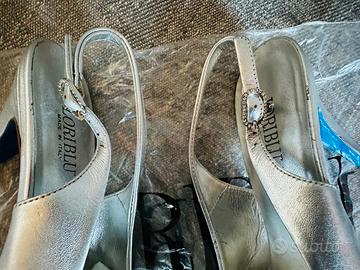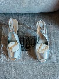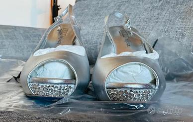Scarpe argento con svarowski Loriblu usate una volta sola. numero 37. modello unico fatto su misura per matrimonio.