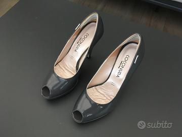 Scarpe grigie lucide con tacco n° 38 marca coconuda originali