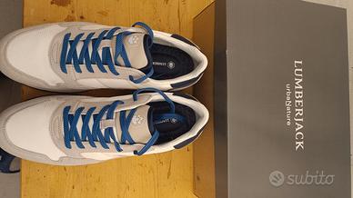 Vendo scarpe sneakers uomo nuove della Lumberjack. Taglia 45 colore bianco/blu con lacci bianchi e blu. Vendo per errato numero. Completo di confezione originale.