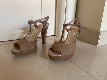 Vendesi scarpe numero 36, mai utilizzate come si può osservare dalla suola. In vera pelle in camoscio beige.
