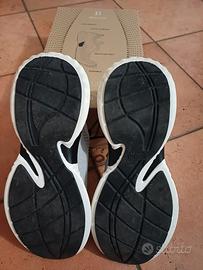 Colore grigio chiaro con lacci neri. Confezione originale.