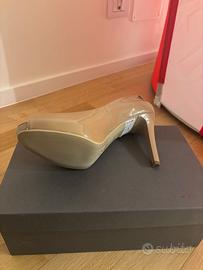 Scarpe décolleté numero 38 MAI indossate(da come si evince dalle foto allegate) marca Nero Giardini color nude. Tacco 9,5. Scheda tecnica: Marca: Nero Giardini Articolo: P805415DE Descrizione: Scarpe decoltè in Pelle Vernice 626 Nudo.