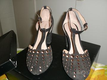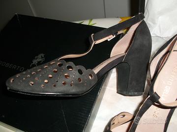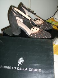 SCARPE MARCA ROBERTO DELLA CROCE N. 35 IN CAMOSCIO COLOR NERO - TACCO CM. 5 - IN SCATOLA ORIGINALE - PRATICAMENTE NUOVE