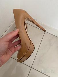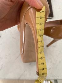 Scarpe in vernice, colore rosa cipria, tacco 12 cm, marchio Miu Miu- indossate pichissimo- presentano dei segni di colore nero.