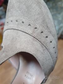 Scarpa donna n.37, marrone, tipo scamosciata tacco a punta di 8,5 cm, piccola zeppa, laccio alla caviglia. Tipo Charleston, adatta anche al ballo, usate poche volte, buono stato