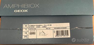 Scarpe GEOX Nebula 4x4ABX in pelle fodera tessuto Amphibiox. Traspirante ed impermeabile Suola in gomma Chiusura lacci Colore coffe/mud ( marrone) Bordo nero Numero 44 No consegna a mano solo spedizione