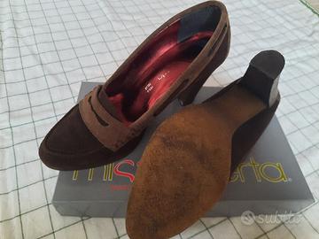 scarpe marrone con tacco 9 cm, numero 38. Brand Miss Roberta, in scatola originale, in ottime condizioni, usate pochissimo.
