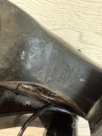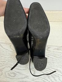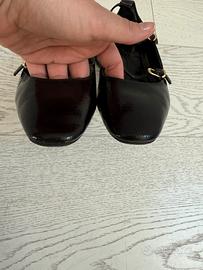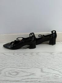 Scarpe modello Mary Jane nere in vernice, marchio Zara. Numero 36, ottime condizioni perché sono state indossate poche volte e sono state tenute sempre con molta cura. Non ci sono difetti e la punta non è rovinata. Il tacco misura 4 cm.