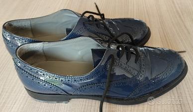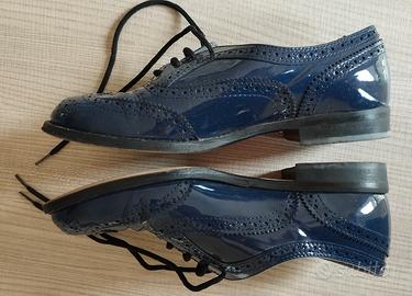 Scarpe marca Mauro Leone Vernice Blu, numero 36. Usate ma in buono stato, segni di usura presenti solamente sotto le suole.