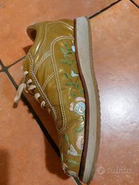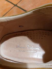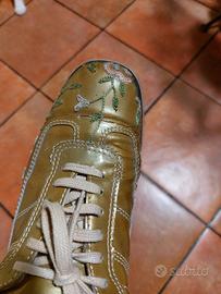 Fantastiche scarpe in pelle lucida verde ricamate dell'importante marchio Mauro Volponi. Portate pochissimo come si vede dalle foto.