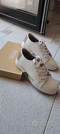 Vendesi sneakers in pelle da donna di Michael Kors bianche con strass sulla linguetta e del tallone numero 37. Sono come nuove, indossate solo 2 volte. Prezzo € 70