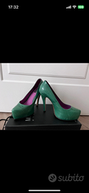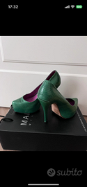 Decoltè Colore verde (pitonato) Sula interna viola Numero 35 Manee Milano (con scatola) Tacco 10,5 cm Plateaux interno in punta 2,5cm