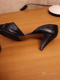 vendo scarpe estive eleganti in pelle blu scuro con motivo intrecciato sulla tomaia suola in cuoio e gomma macca Melluso