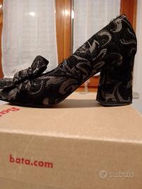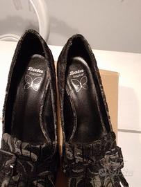 scarpe mocassino con frangia tacco comodo mis 37 marrone nero