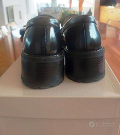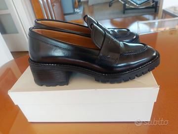 SCARPE MODELLO MOCASSINO IN PELLE NERA, TG. 38, USATE SOLAMENTE 2 VOLTE PERCHè TROPPO PICCOLE PER ME. TACCO IN GOMMA CM.5 CON SCATOLA E CUSTODIA