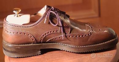 Derby wingtip Nelson, 4 fori, color cognac, misura 9 ½ , in ottime condizioni, interamente foderate in pelle, suole in gomma antiscivolo, il tutto come da foto. Misura lunghezza interna cm. 29; misura larghezza massima suola cm.11. Tendiscarpe non compresi nell'offerta