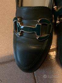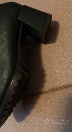 Scarpe invernali in vera pelle di colore verde scuro, tacco 6 cm, con plantare in memory. Fibbia molto elegante, da indossare per ogni occasione.
