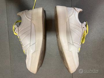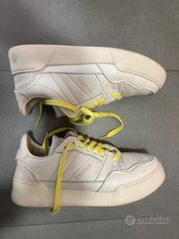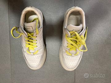 Sneakers Mono Way in vera pelle, un mix di stile e comfort. - Tomaia in vera pelle bianca. - Lacci di colore giallo vivace. - Dettagli traforati sulla punta.