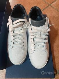 Vendo scarpe Moreschi muove mai usate in vera pelle con finiture in verde, completa di scatola e sacchetto originale.