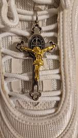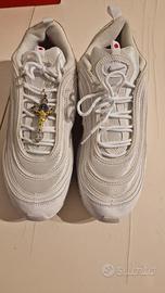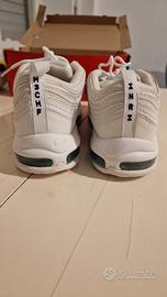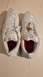VENDO SCARPE MSCHF INRI NIKE AIR MAX 97 JESUS N.43 EUR NUOVE di colore bianco. Avevano la loro scatola originale, ma purtroppo dopo un trasloco è andata persa. Hanno molte peculiarità a 360 gradi, dettagli in tutta la scarpa sia esternamente ed internamente riguardanti Gesù Cristo e tutto quello che ne concerne essendo proprio a Lui dedicate o ispirate. Quella che sicuramente fa più scalpore è che al loro interno nei cuscinetti dove c'è l'aria possiedono qualche millilitro d'acqua presa dal fiume Giordano e successivamente Benedetta. Oltre a questa singolarità che è quella che ritengo più affascinante e di rilievo, hanno altre unicità che non vi sto ad elencare, ma per chi fosse interessato a saperne di più vi invito anche a voi a fare delle ricerche riguardanti questo paio di scarpe così speciali, uniche e controverse. È stato un regalo di Natale del 2019, non sono mai state utilizzate per via della loro originalità e stranezza, quindi presumo siano un pezzo da collezione. Come modello di airmax 97 sono davvero molto belle, la taglia è un numero 43 europeo in centimetri 27.5 e per chi fosse credente/devoto a Gesù Cristo fanno proprio al caso vostro. Preferibilmente ritiro di persona, ma su richiesta posso anche spedire in tutta Italia a carico dell'acquirente.