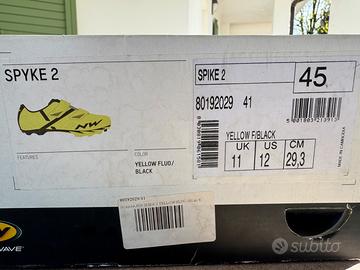 Vendo scarpe mtb North Wave Spike 2 taglia 45 usate 2 volte per errore numero. Modello da MTB Cross-Country, le scarpe NORTHWAVE Spike 2 . La tomaia è morbida e leggera. Le Spike 2 avvolgono perfettamente il piede. Le microforature posizionate strategicamente lasciano circolare l’aria dentro la scarpa. Le 2 larghe fasce velcro permettono di regolare l’aderenza sul collo del piede. La suola esterna in gomma naturale assicura una perfetta aderenza a qualsiasi tipo di terreno. Punti forti + Ottimo rapporto qualità/prezzo + 2 larghe fasce velcro pratiche da usare per regolare la chiusura + Tomaia morbida e perforata + Ottima aderenza sotto la suola Caratteristiche Colore : Giallo Suola Esterna : Gomma Tipo di Chiusura : Velcro Tipo di Pedali : sgancio rapido Peso (produttore) : 734 g
